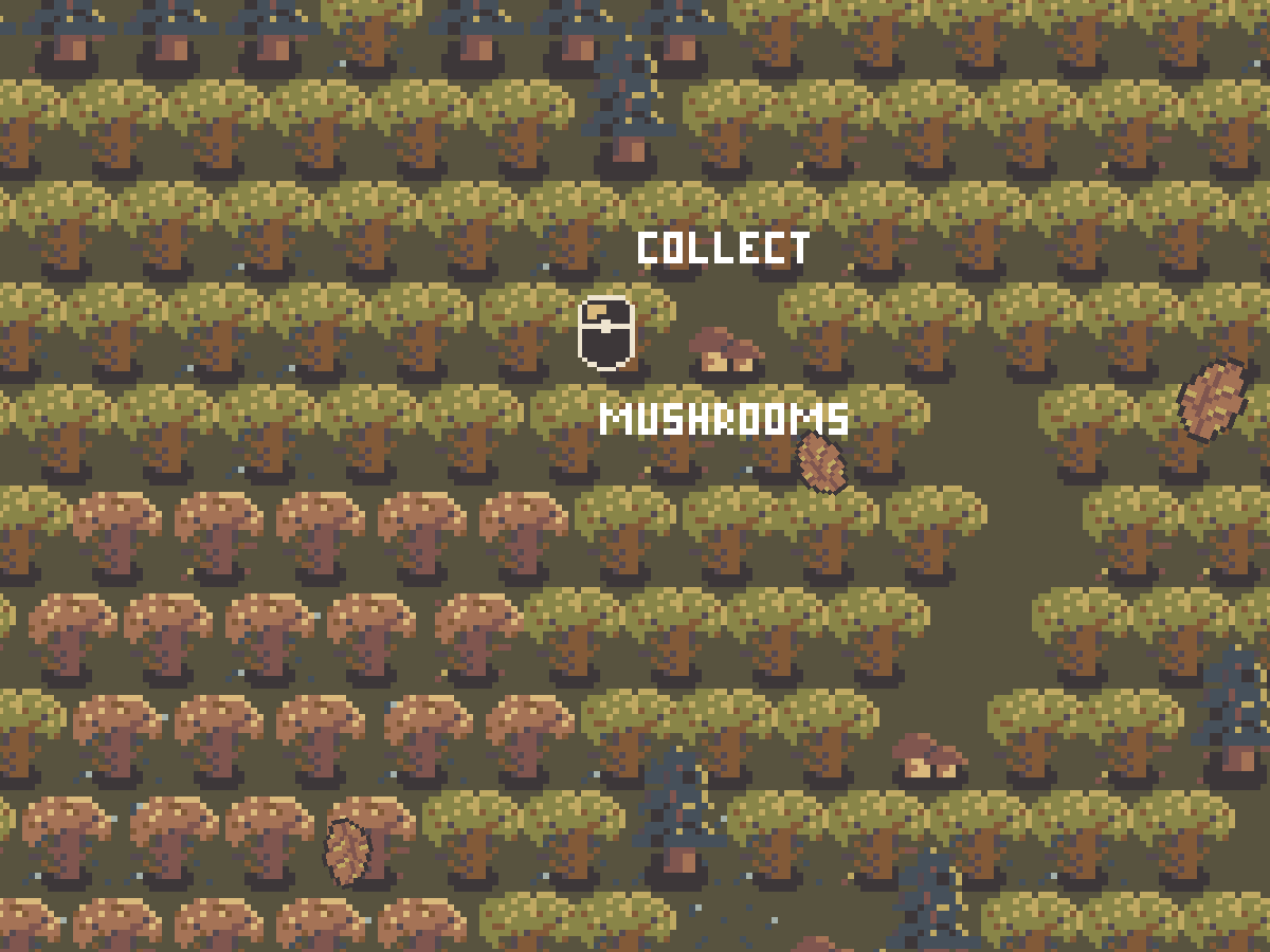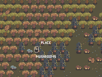 - Click mushrooms to collect them and click any empty tile to place them down